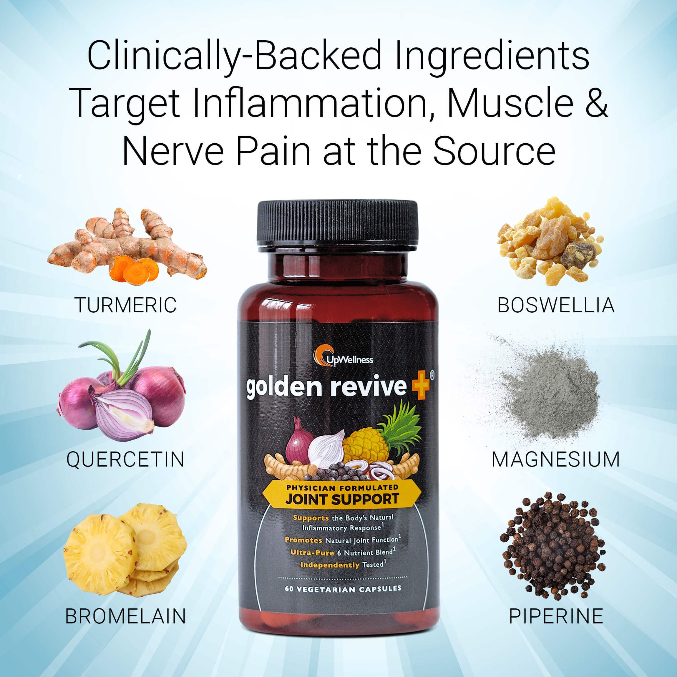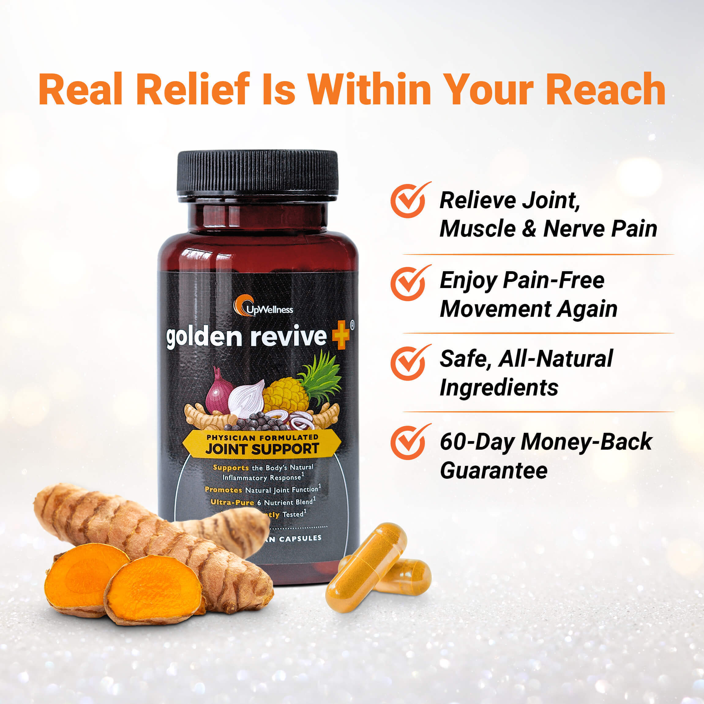 Golden Revive+ stands out because of its unique formula that combines nature’s best anti-inflammatory and pain-relieving ingredients, including turmeric, Boswellia, and quercetin. Unlike many products that only mask pain, this formula works to address the root causes of discomfort by supporting the body’s natural inflammatory response and joint health.